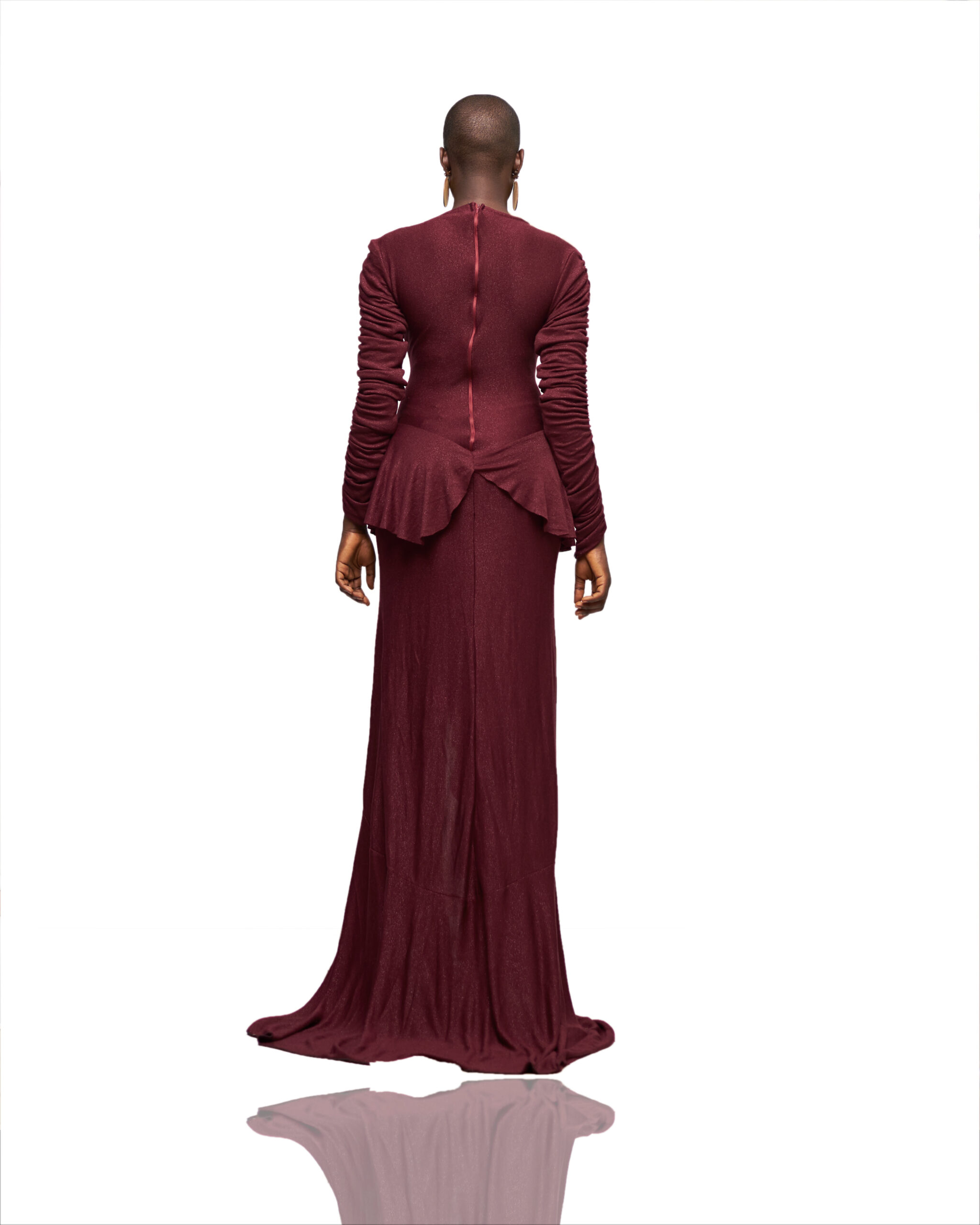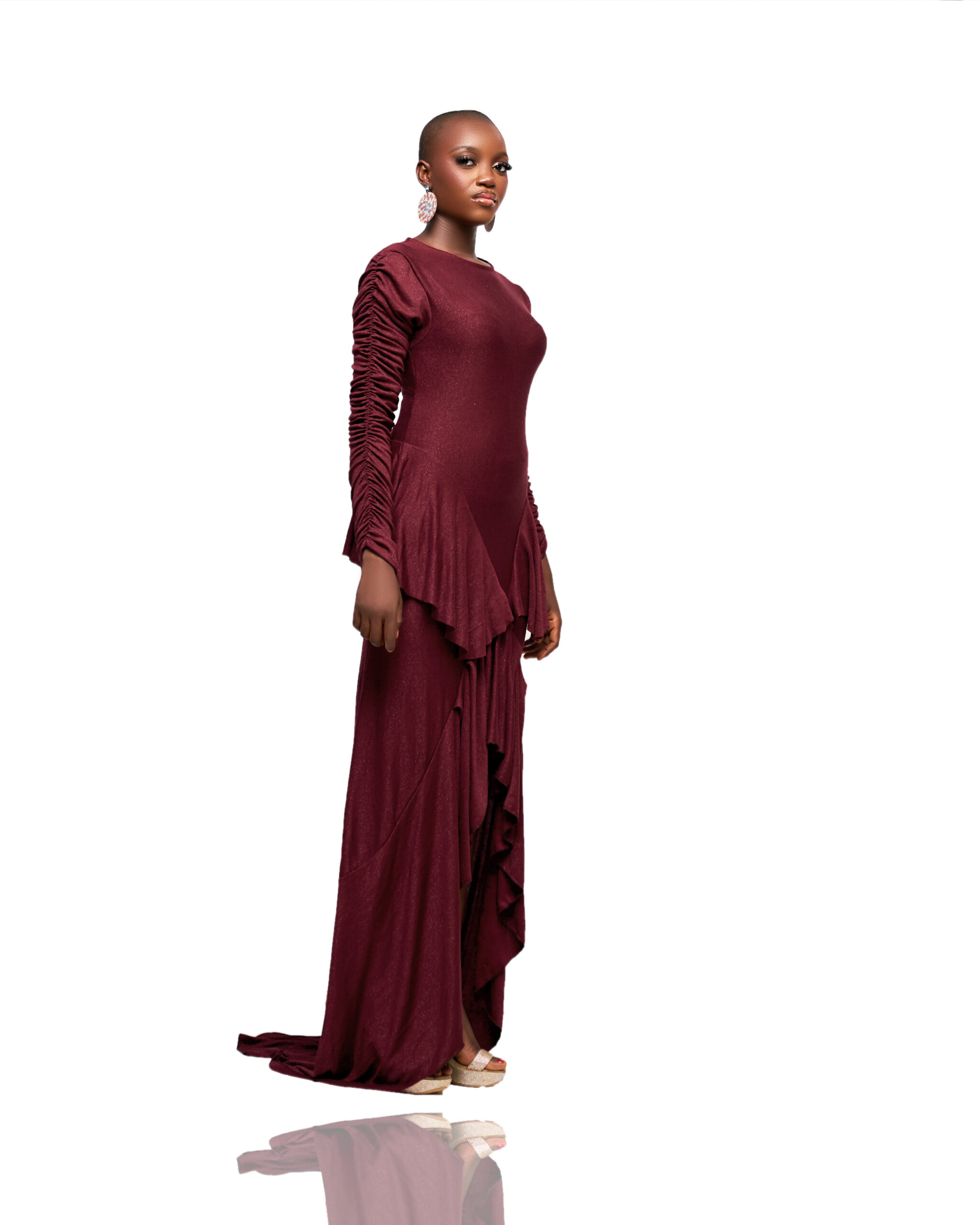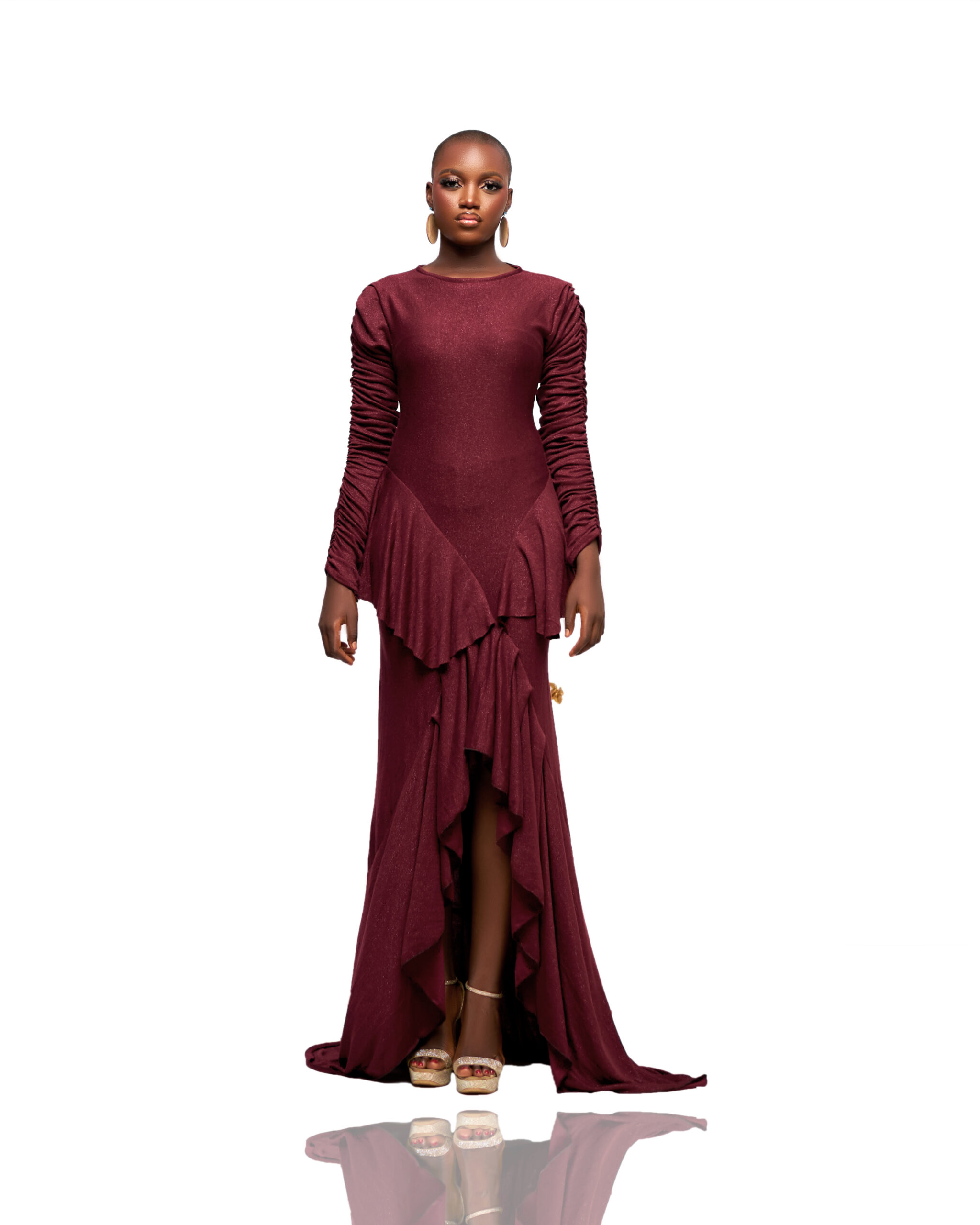 Be the first to review “Wine Ruffle Hem Gown”